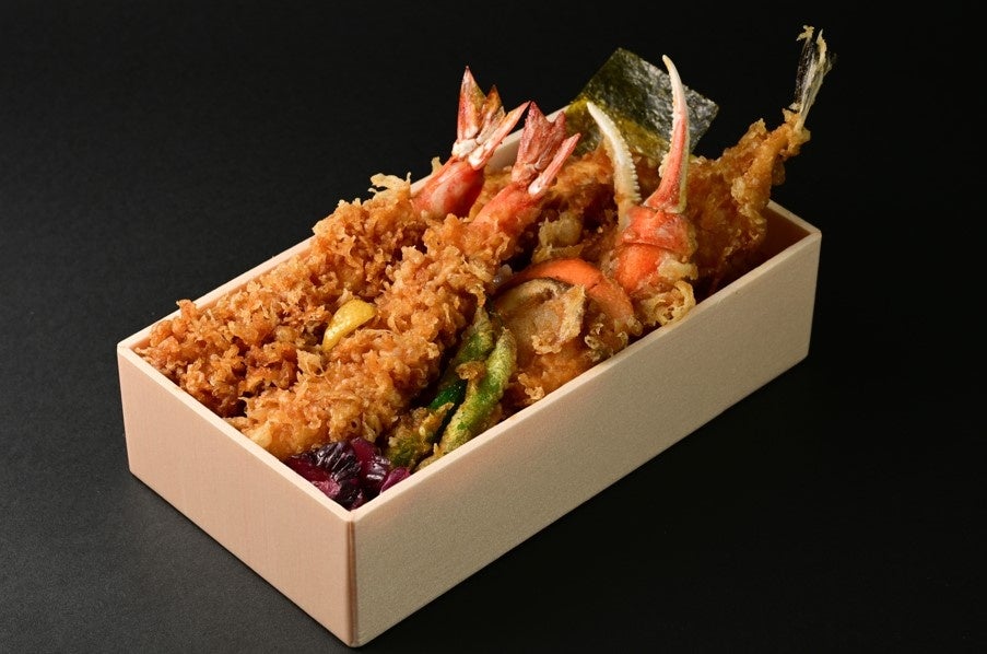車海老、帆立、蟹爪等、贅沢な食材を使用した天丼弁当に「フグ」を追加し、より豪華に仕上げました。秘伝の丼たれと合わせてご賞味ください。